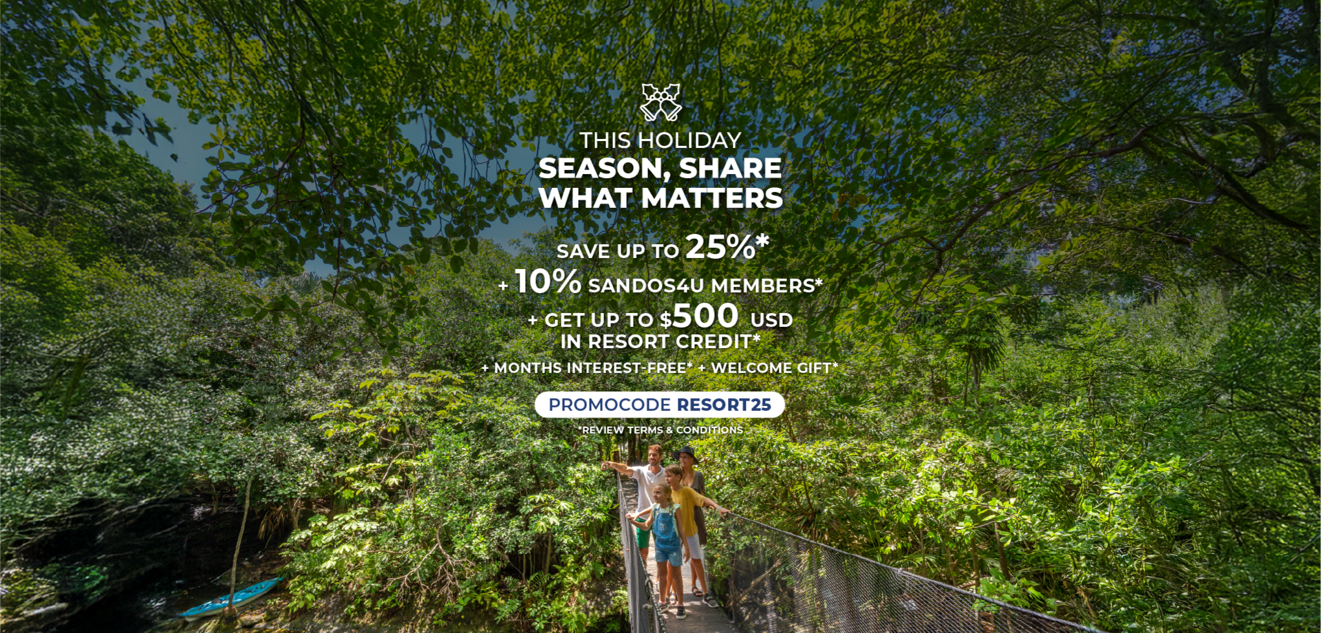 SAVE UP TO 25% + 10% OFF SANDOS4U MEMBERS + GET UP TO $500 USD RESORT CREDIT + MONTHS INTEREST FREE + WELCOME GIFT